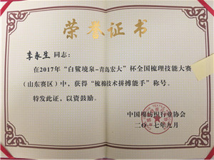 公司在2017年“白鯊境泉-青島宏大”杯全國(guó)梳理技能大賽榮獲佳績(jī)