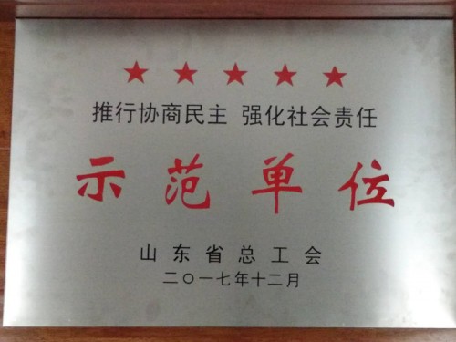 近日,在省總工會組織召開的全省工會與行政溝通協(xié)商機(jī)制建設(shè)現(xiàn)場經(jīng)驗(yàn)交流會議上,我公司分別榮獲“山東省富民興魯勞動獎狀”、“推行協(xié)商民主強(qiáng)化社會責(zé)任”示范單位榮譽(yù)稱號。