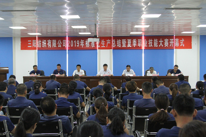 6月11日上午,由利津縣總工會(huì)、利津縣人力資源和社會(huì)保障局主辦,三陽紡織有限公司承辦的2019年標(biāo)準(zhǔn)化生產(chǎn)總結(jié)暨夏季職業(yè)技能大賽開幕式在公司辦公樓三樓會(huì)議室隆重舉行。利津縣總工會(huì)黨組書記、常務(wù)副主席黃昕,副主席薄其福,縣人力資源和社會(huì)保障局副局長于永強(qiáng),公司董事長兼總經(jīng)理張堯宗,公司副總經(jīng)理、總工程師李大松、公司副總經(jīng)理徐西國出席并參加了開幕式。會(huì)議由公司副總經(jīng)理兼工會(huì)主席李小兵主持。