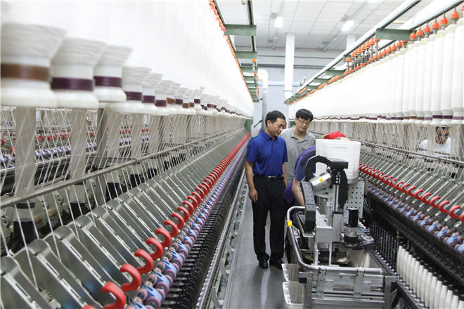 縣委辦公室主任韓兵一行參觀了公司精紡二車(chē)間生產(chǎn)在線智能化系統(tǒng)和生產(chǎn)在線智能落紗系統(tǒng),并對(duì)三陽(yáng)公司多年來(lái)的發(fā)展成就和公司生產(chǎn)技術(shù)的先進(jìn)化程度給予充分肯定。希望三陽(yáng)公司在今后的發(fā)展過(guò)程中要緊緊抓住全市支持利津跨越發(fā)展的重要機(jī)遇,加快專項(xiàng)升級(jí)和新舊動(dòng)能轉(zhuǎn)換步伐,實(shí)現(xiàn)企業(yè)的高質(zhì)量發(fā)展,為地方經(jīng)濟(jì)發(fā)展做出新的更大的貢獻(xiàn)。
