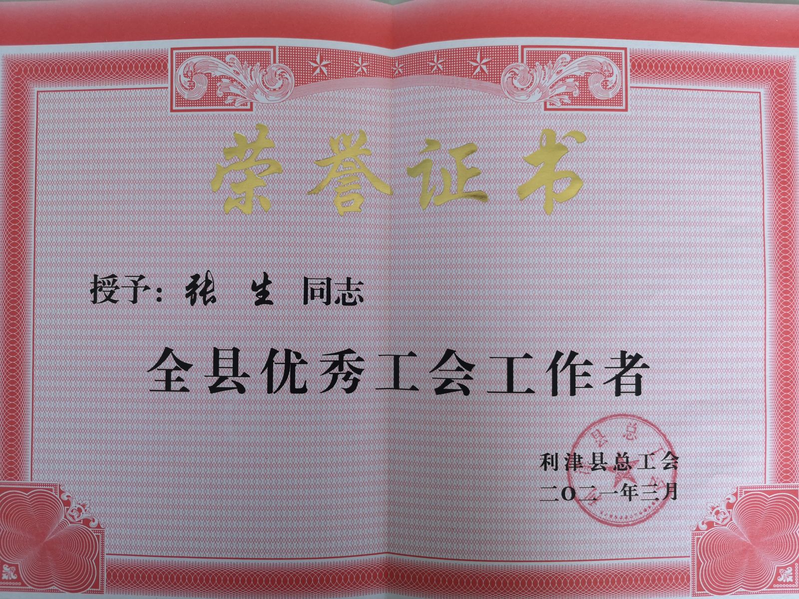我公司張生同志被授予“全縣優(yōu)秀工會工作者”榮譽稱號