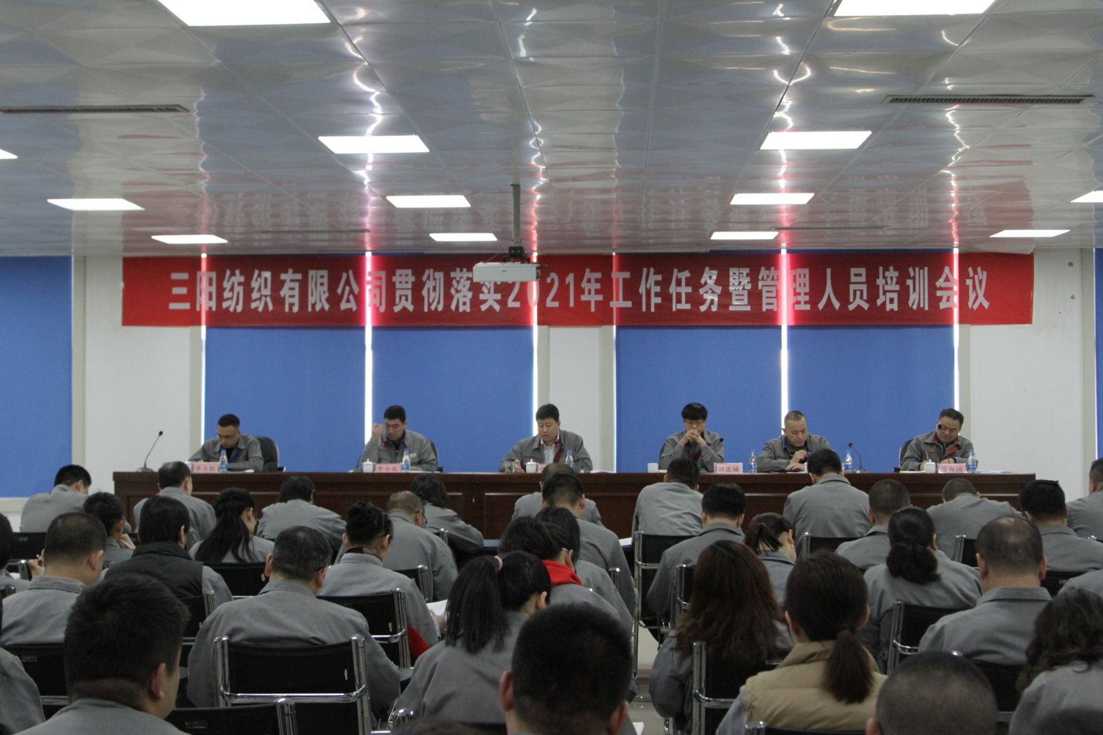 3月30日,三陽紡織有限公司貫徹落實(shí)2021年工作任務(wù)暨管理人員培訓(xùn)會(huì)議在公司辦公樓三樓會(huì)議召開,公司董事長(zhǎng)總經(jīng)理張堯宗同志發(fā)表重要講話。公司副總經(jīng)理劉虎城、李小兵、孟剛、李大松、徐西國(guó)出席會(huì)議并在主席臺(tái)就坐,公司中層以上管理人員、各公司基層管理人員代表、后勤管理系統(tǒng)行管工程師共計(jì)98人參加了會(huì)議。