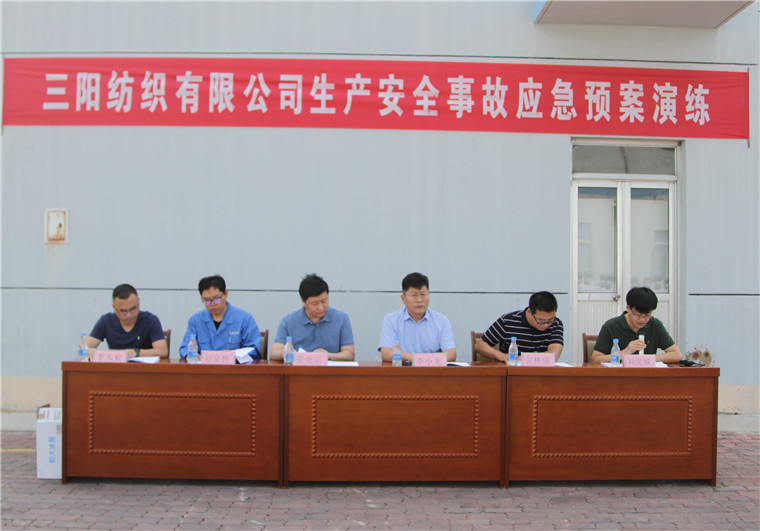 6月22日,三陽紡織有限公司地溝火災(zāi)安全事故應(yīng)急救援預(yù)案演練在公司精紡二車間舉行。利津縣應(yīng)急管理局黨委委員、副局長李小龍,利津經(jīng)濟(jì)開發(fā)區(qū)應(yīng)急管理部副部長張林強(qiáng),利津煉化化工生產(chǎn)二部安全監(jiān)督辦公室主任趙泉林蒞臨演練現(xiàn)場(chǎng)觀摩指導(dǎo),公司董事長兼總經(jīng)理張堯宗,公司副總經(jīng)理、總工程師李大松出席演練活動(dòng)并在主席臺(tái)就坐,演練由公司副總經(jīng)理劉虎城主持并擔(dān)任現(xiàn)場(chǎng)指揮。_副本.jpg)