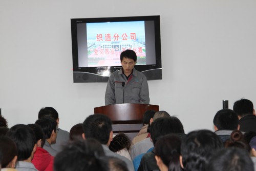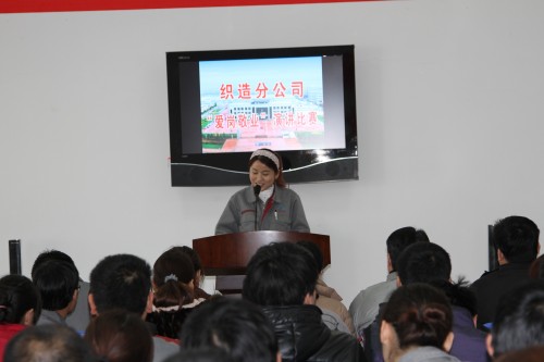 為強(qiáng)化員工責(zé)任心,提升員工執(zhí)行力,營造愛崗敬業(yè)、勇于奉獻(xiàn)的濃厚氛圍,增強(qiáng)員工的主人翁意識(shí)、工作責(zé)任心和企業(yè)歸屬感。在公司工會(huì)、公司技術(shù)中心的支持下,2月28日上午8:30,織造分公司在公司文化中心影視廳成功舉辦了2014年首屆“愛崗敬業(yè)”演講比賽。公司各車間主管應(yīng)邀觀看了比賽,并擔(dān)任了評(píng)委。同時(shí),各車間均選派代表觀看了本次演講比賽。