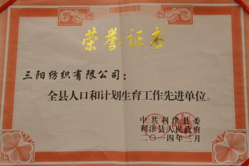 3月24日,全縣2013年度人口和計劃生育目標責任獎懲兌現(xiàn)暨工作會議在利津縣賓館迎賓樓第一會議室舉行。我公司榮獲全縣人口和計劃生育工作先進單位。